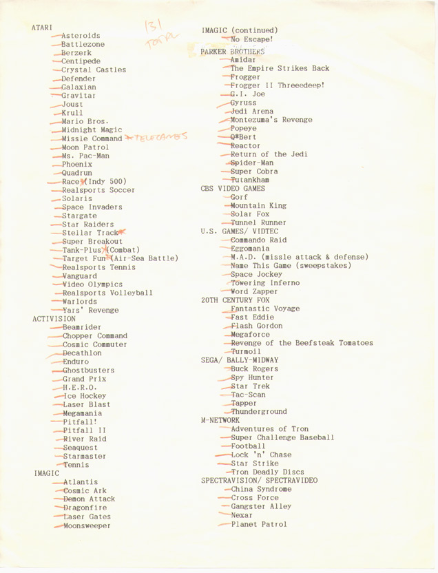This is my 2600 Game List (36k PDF file - you'll need to zoom in to read it). It's sorted based on when I bought the games - as part of my original collection, or as a recent acquisition, with duplicates listed at the bottom.